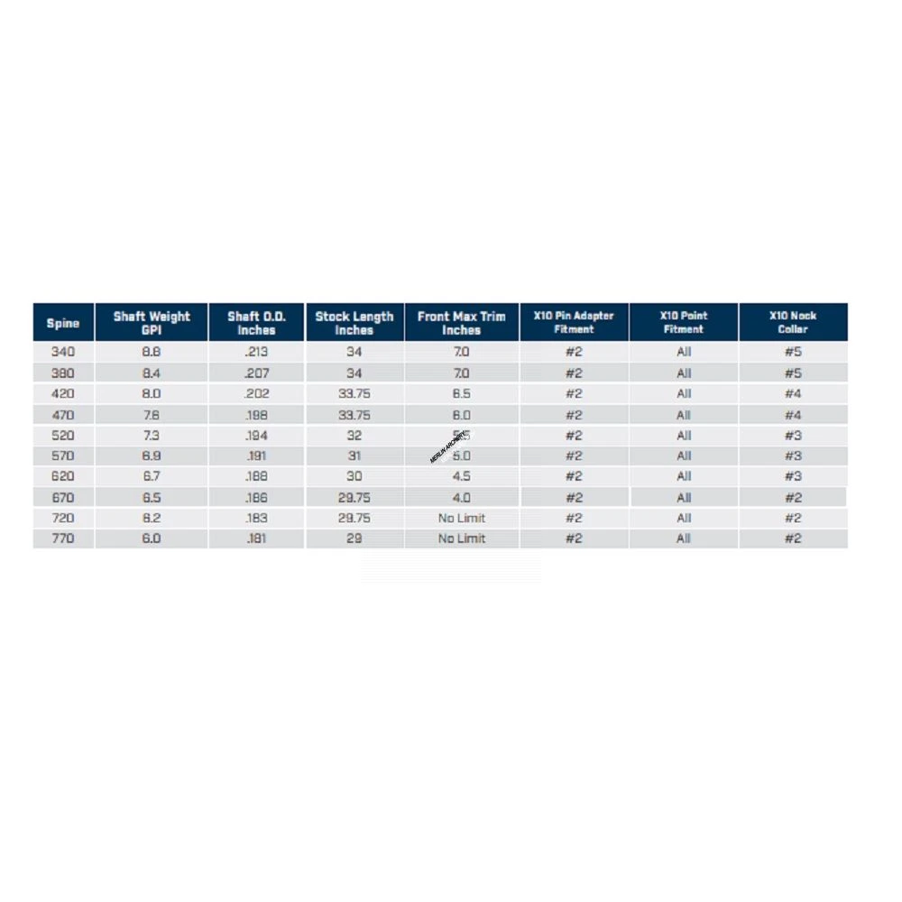 Specifically engineered for compound target competition, ProTour features a front taper allowing for every size to use Easton X10 point components- the same components that have been used to win every Olympic medal since 1996. The precisely engineered mass to spine ratio of each ProTour size ensures the best ballistic performance at longer compound competition distances and gives archers an undeniable edge in unpredictable windy weather. With unmatched precision and legendary durability in even the most abusive target materials on the world circuit, ProTour is at the absolute performance pinnacle for compound target precision.
