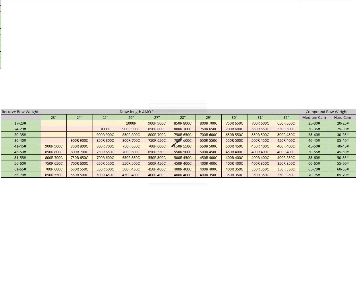 | Spine | OD | GPI | AMO Stock Length | Point weight |